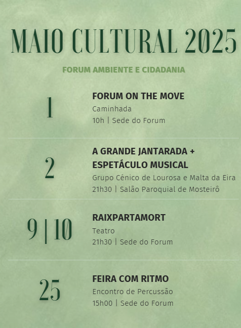 Sábado, 10 de Maio 2025 até Sexta, 16 de Maio 2025 I Cultural