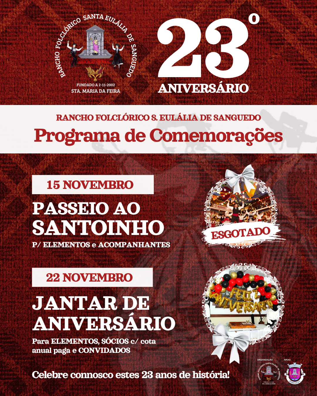 Celebre conosco o 23° aniversário do Rancho Folclórico Santa Eulália de Sanguedo!
